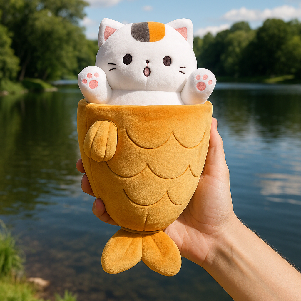 Pluszak łączy motyw kotka z rybim ogonem, tworząc unikalny i zabawny wygląd, który przyciąga uwagę zarówno dzieci, jak i dorosłych. Rozsuwany zamek pozwala odsłonić ukrytego kotka w kostiumie, dodając element magii do codziennej zabawy.